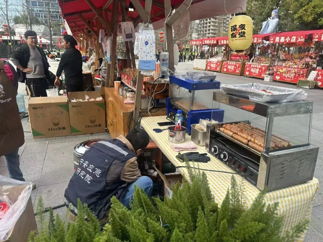 陈老师、韩老师对交子大道两侧元宵节活动开展安全检查